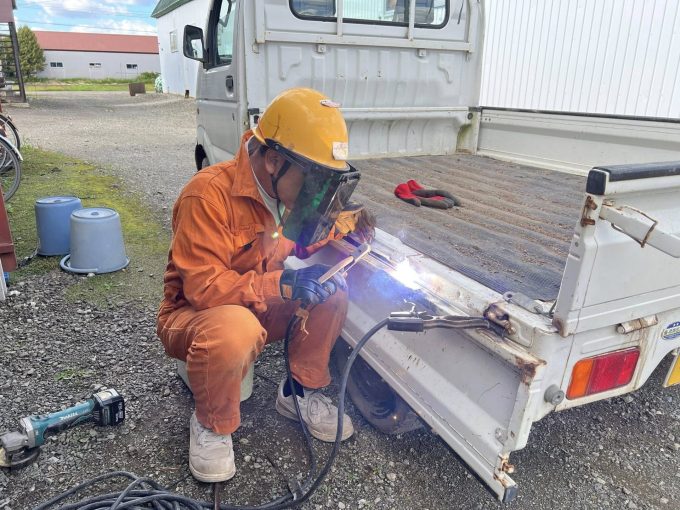最後にあおりの外側も平板当てて補強溶接。これでバッチリ直りましたー\(^o^)/
