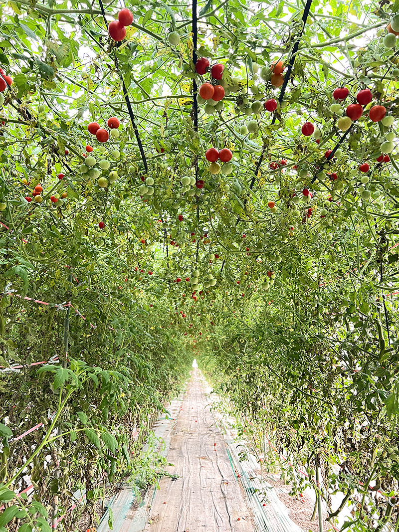 ハウス内上部が高温・高湿度にならないため、ミニトマトの蒸散が活発になるので生育後半の樹勢維持にも効果大。