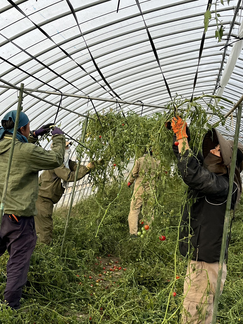長さが100mあるミニトマトハウスなので、約5人で片付けに2日かかりました。
