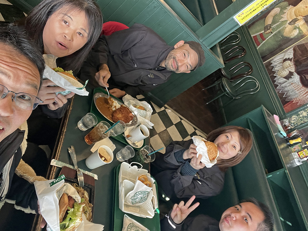 社員さん3人、みんなに喜んでもらえて良かったです。ラッキーピエロは食べ過ぎたけど、おいしかったね😁