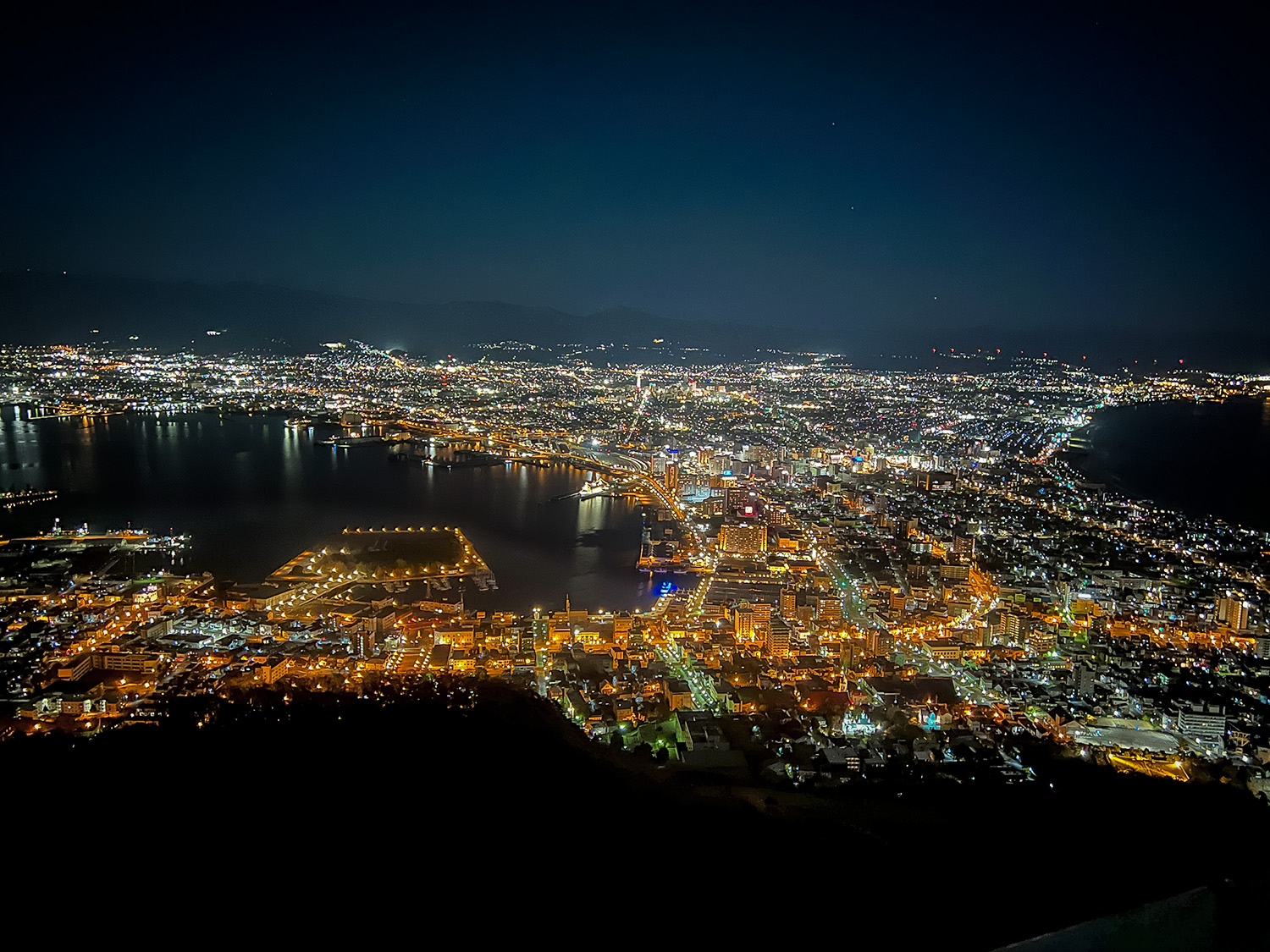 その後、ライトアップされた歴史ある建物を車中から見て、勢いそのままに七飯町まで車で走らせ「函館の”裏”夜景」まで観にいきました。これはなかなか見られませんね😳