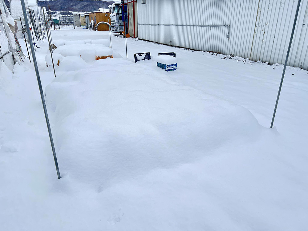 早く雪溶けないかな。ハウス周りの片付け作業、もうちょっと残っているんだよな…😅