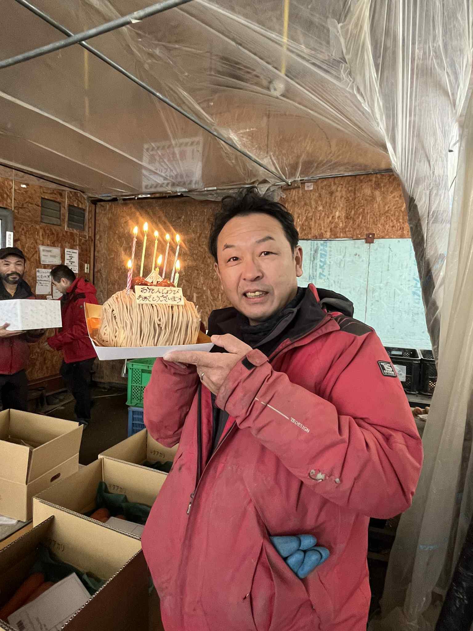 昼礼の時間、誕生日ケーキとプレゼントをいただきました。祝ってくれてうれしいです!