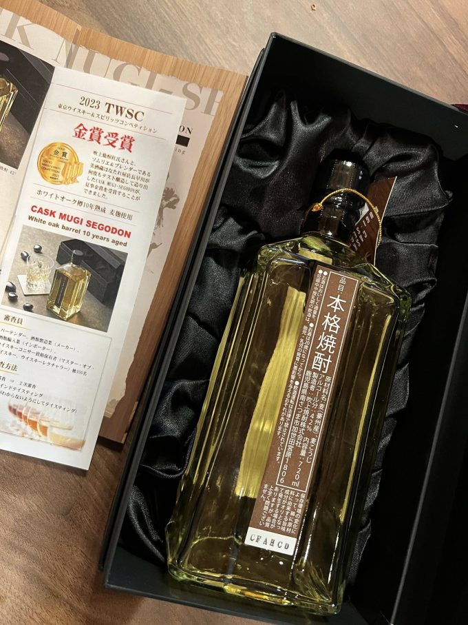 ホワイトオーク樽10年熟成・本格焼酎。すんげーな、よくこんなの見つけたなー。