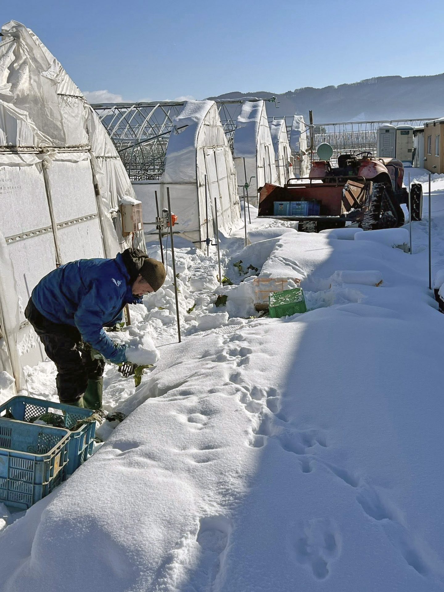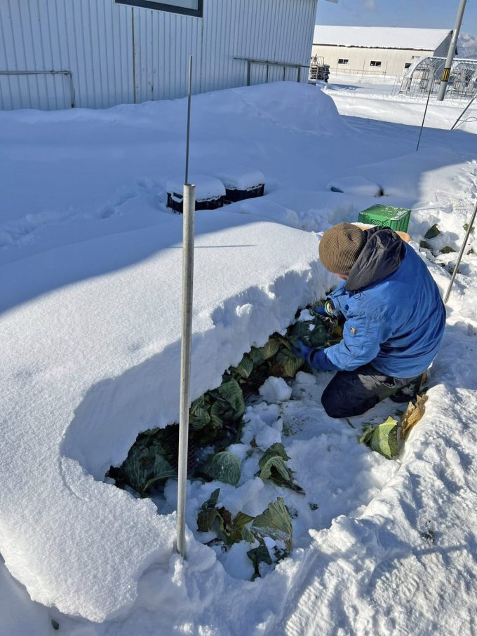 マイナス23度を記録した朝。雪の下からのキャベツ掘り作業から仕事始めでした。