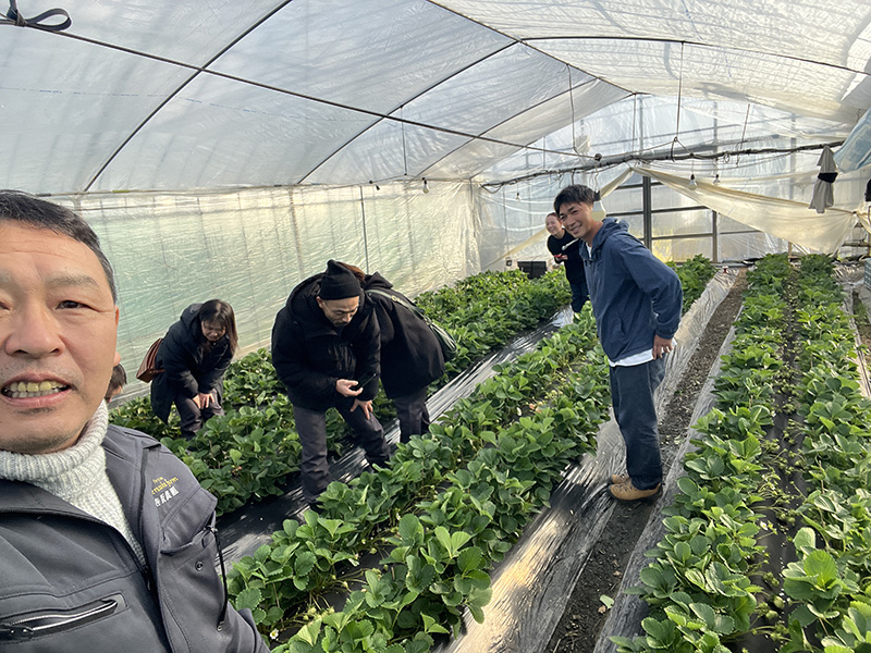この下川さんが育てるあまおうイチゴを寺坂農園のお客様にご紹介したいな!ということで、みんなで訪問しイチゴ畑で栽培に込める想いをたっぷり聞かせてもらいましたー。