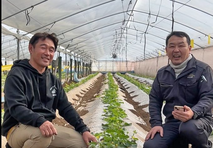 次に、福岡県筑後市に移動してあまおうイチゴの生産者である下川さんへ訪問。