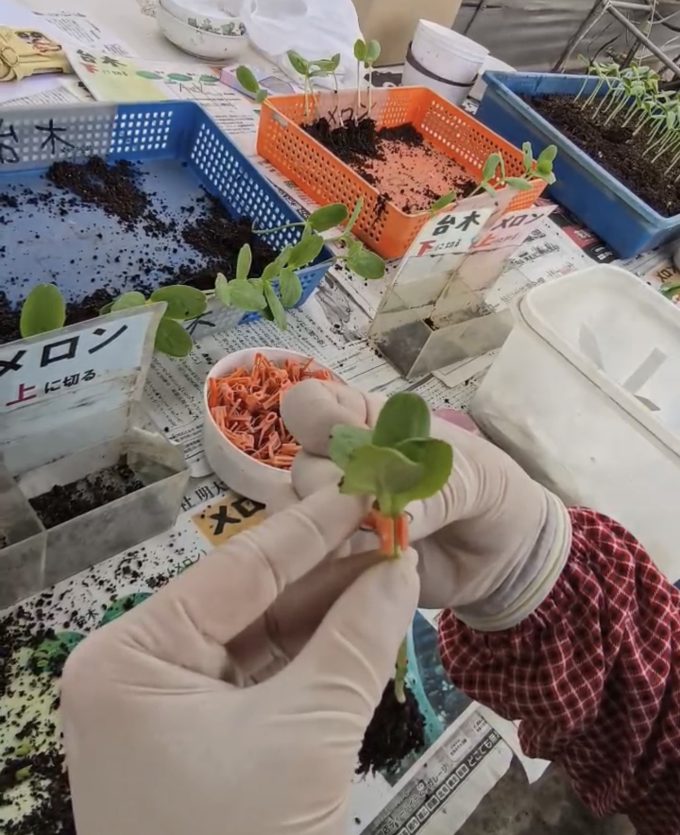 極力そうゆう苗を出さないように、この接木作業は、とても繊細で集中力を要する作業☝️