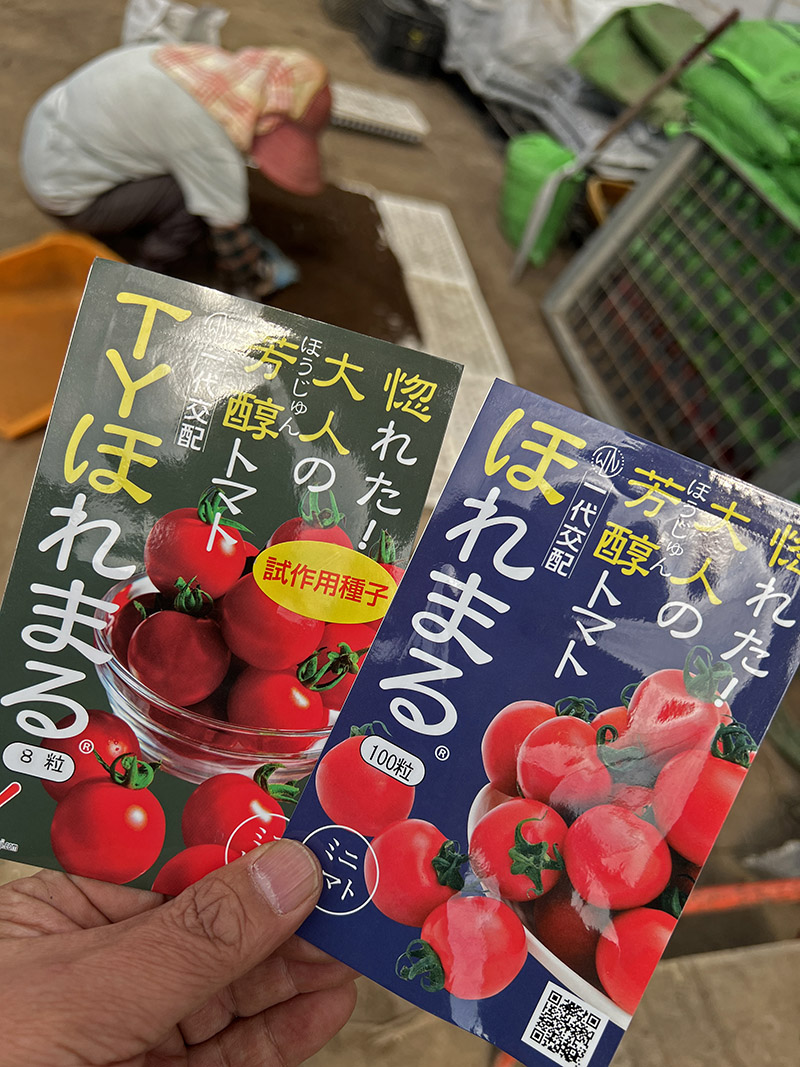 試験種のYTほれまる、も、数株ハウスの端の方に植えてみます。なんかの病気に強い品種とのこと。味は変わらないとのこと。生育や傾向を見てみますね~。