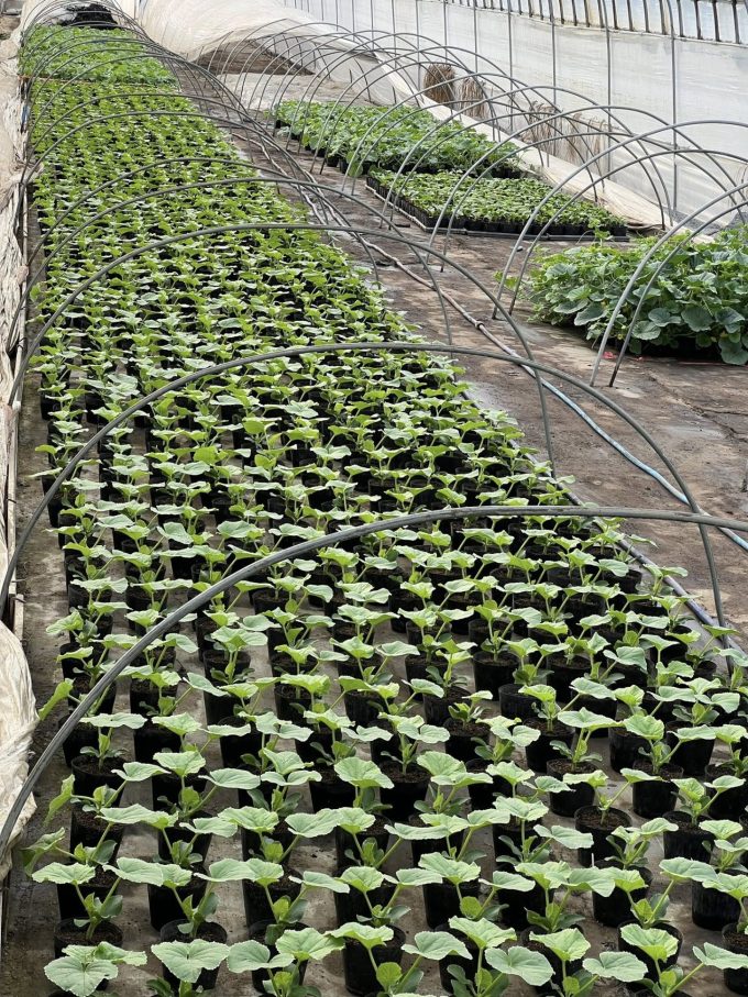 メロン育苗ハウスも苗であふれかえってきました。どんどんメロンハウスの方を準備して、約10日おきに順次進めて行きます。