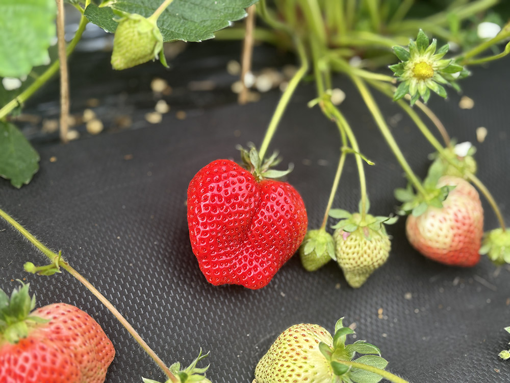 本当においしいイチゴは、畑で真っ赤に熟りきった「完熟」状態です。
