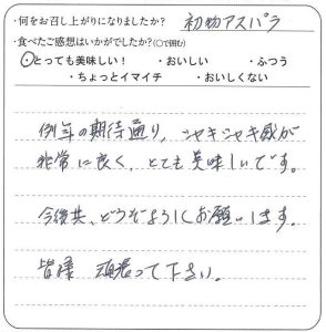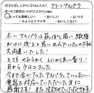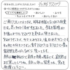 採れたてのみずみずしいアスパラをぜひ味わって欲しいです。