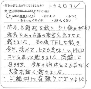 その日に収穫したものをその日に発送しますので、日付指定は基本承りません。