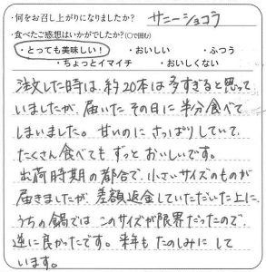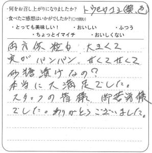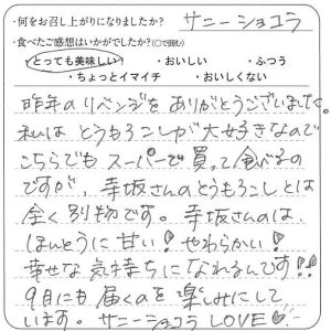 僕:「あ~、ビックリさせないでよ。クレームかと思いましたよ。でも、そんなにおいしかったんだぁ~。」