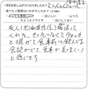 原料の「ほれまる」の美味しいさ風味がそのまま口の中に広がる余韻が楽しめるジュースに仕上げました。