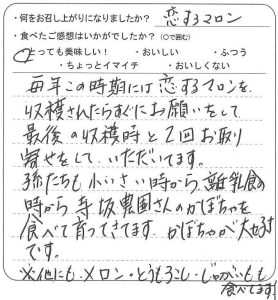 手書きのお手紙には感動 - こんにちはまず社長さんの手書きのお手紙には感動致しました。今は自分の文字でお客様にお礼をおっしゃる方はいませんから。1年通してとてもきびしい気候 そして物価の高騰の中 毎年本当に美味しい物を育てて送って下さることに感謝致 […]