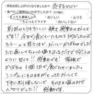 デザートのように甘くて!!感動です! - 前回のとうもろこしに続き、感動のおいしさです!!今まで食べていたものは何だったんだろう・・・。と思うほどおいしいかぼちゃでした!ただ蒸してちょっと塩をふるだけでデザートのように甘くて!!感動です!家族でかぼちゃ1個 1日 […]