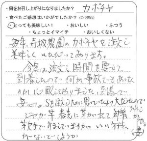毎年美味しくいただいております - 毎年、寺坂農園のカボチャを注文し美味しくいただいております。今年は注文し時間を要して到着したので、何か事故でもあったのか心配しておりました。到着で安心。Sを注文したのに思っていたより大だったのでうれしかった。ジャガ芋 春 […]「おいしい!」に自信があるから