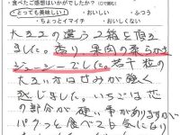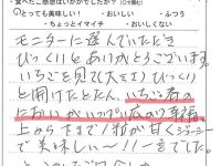 この度はあまおうイチゴを試食させて頂き、ありがとうございました。 一粒口に入れた時に昔の香りの高い実感、食べた時...