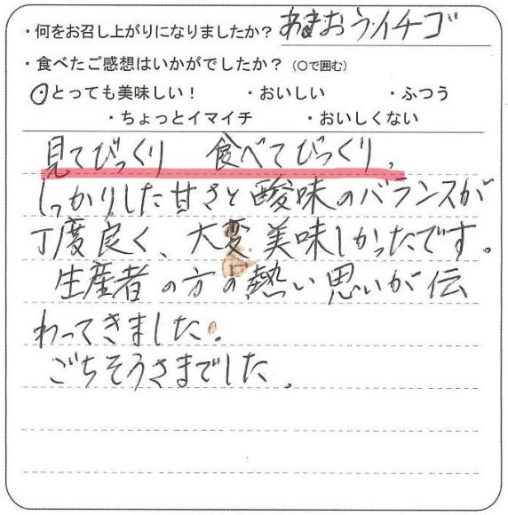 しっかりした甘さと酸味のバランスが丁度良く、大変美味しかったです。