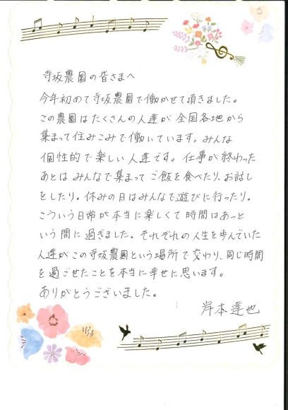 それぞれの人生を歩んでいた人達がこの寺坂農園という場所で交わり、同じ時間を過ごせたことを本当に幸せに思います。